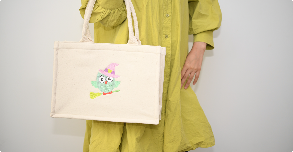 推薦使用PR680W,搭載130*180mm磁吸框或100*100mm雙面夾框進(jìn)行包面的刺繡。