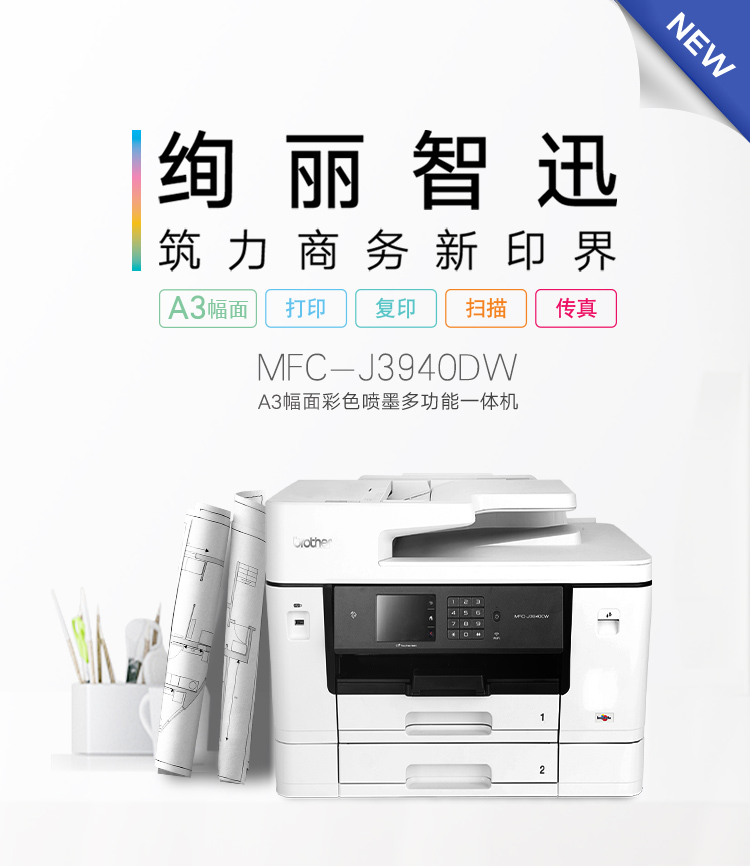 僅NFC-J3930DW、MFC-J3940DW支持A3幅面的自動雙面打印、復印、掃描和傳真。